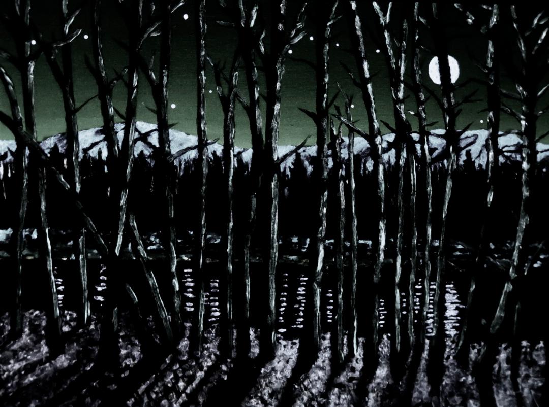 "Aspen Trees in Rocky Mountain Park" captures the rhythmic elegance of quaking aspens—those luminous sentinels of the high country. Painted on an 18" x 24" wood panel with acrylic and phosphorescent pigments, the piece shimmers by day and glows softly after dark, echoing the living energy of the forest. Each trunk, etched with time and light, becomes part of a quiet chorus that speaks of renewal, memory, and the shifting seasons. This work is both a love letter to the Rockies and a luminous meditation on place.